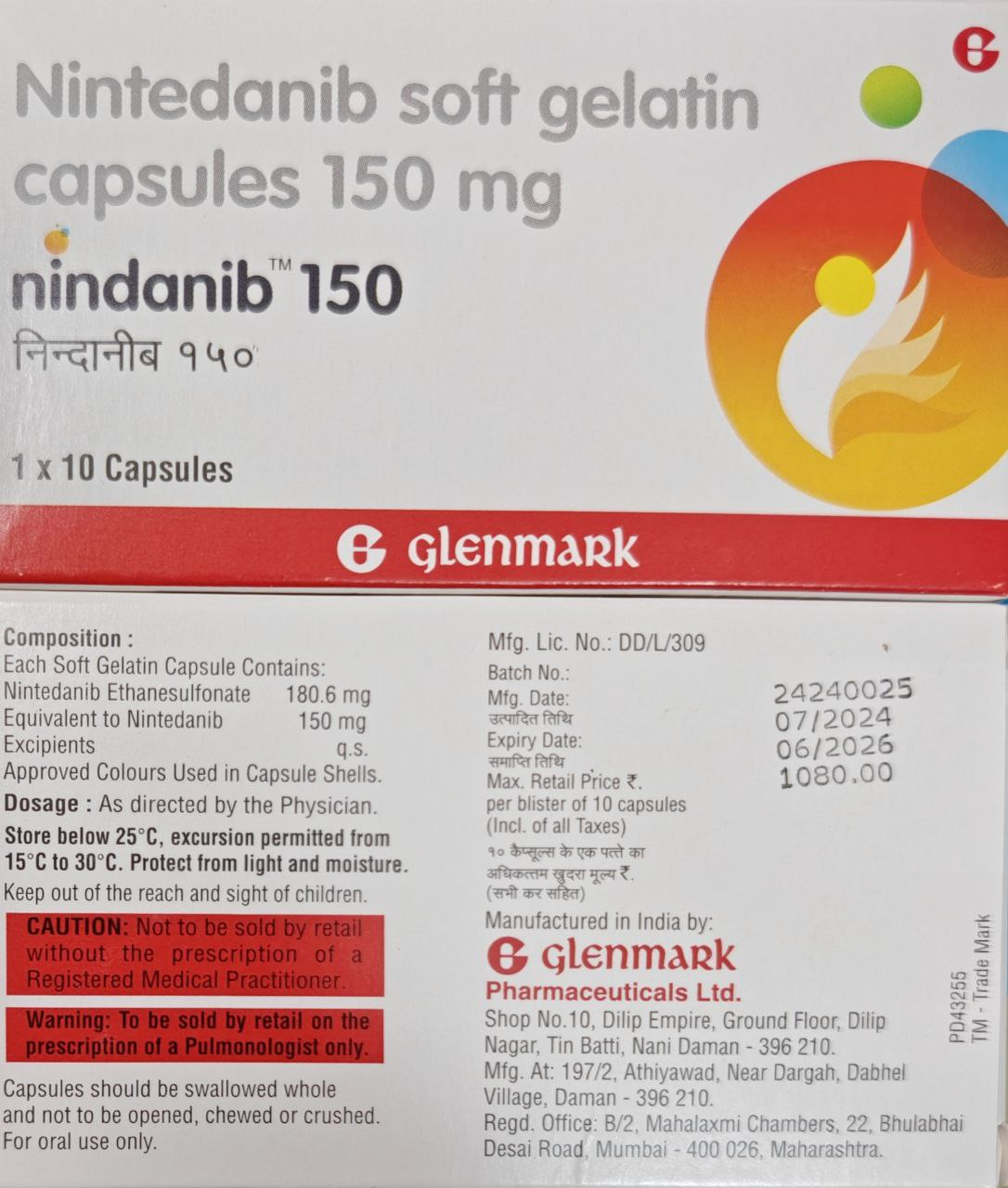 Нинтеданиб показан для лечения идиопатического легочного фиброза (ИЛФ)8 и для замедления снижения функции легких у пациентов с интерстициальным заболеванием легких, ассоциированным с системной склеродермией10. Он также показан для лечения хронических фиброзирующих интерстициальных заболеваний легких с прогрессирующим фенотипом10.